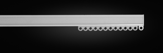 Hliníková záclonová tyč s integrovaným suchým zipem. Slouží k instalaci garnýží. Lze montovat samostatně nebo přes spojku k typu E. Maximální délka 6m umožňuje horizontální i vertikální ohyb. Tento profil je součástí systému pro římské rolety. Ohyb je možný v horizontálním směru u vertikálního jen mírný. Maximální délka záclonové tyče je 6m.